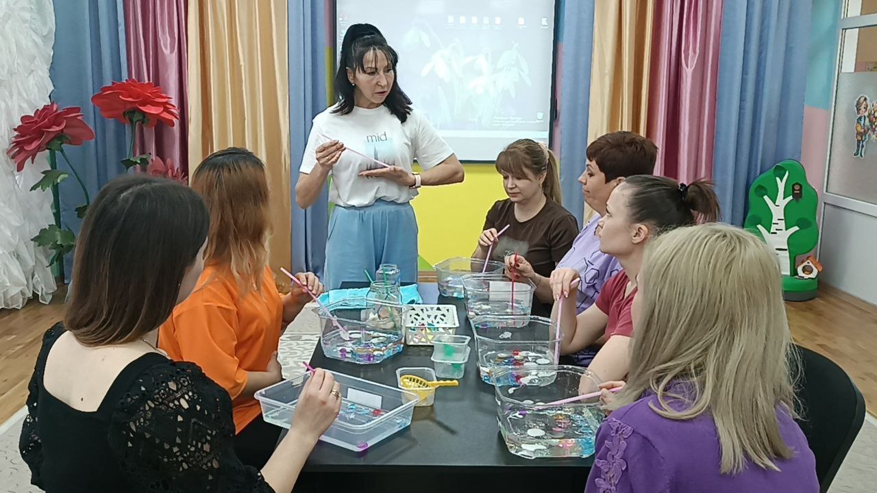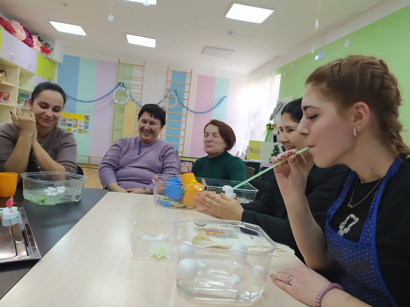 11.01.2023 Алёна Васильевна в рамках проведения ШМВ "Росточек" в ДОУ организовала и провела мастер-класс для педагогов "Аква-терапия в развитии речи дошкольников"