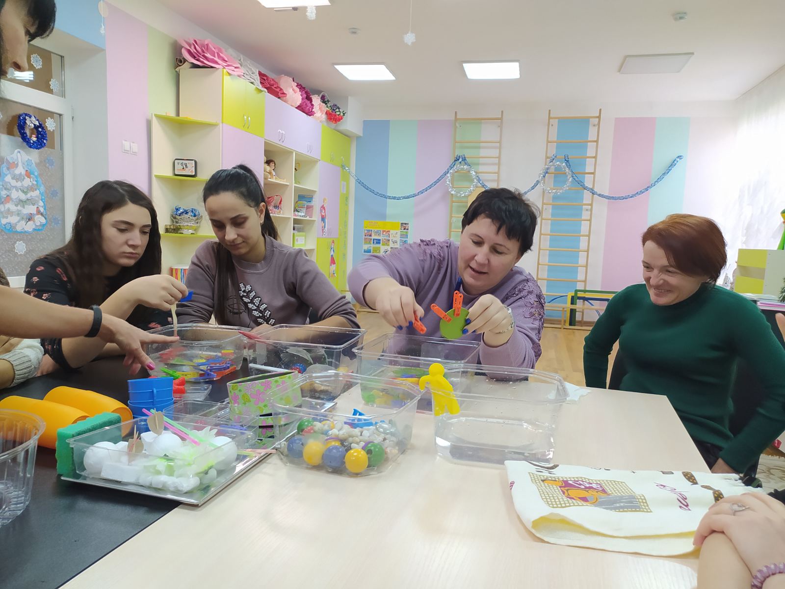 На мастер-классе родители познакомились с методами акватерапии и активными играми, которые помогают развивать сенсорные навыки у детей. Седик А.В. продемонстрировала, как с помощью различных элементов из воды и мелкой моторики можно создать интерактивное и познавательное пространство для детей. Участники также узнали о важности взаимодействия с природой и о том, как это может способствовать духовному и физическому развитию малышей.
