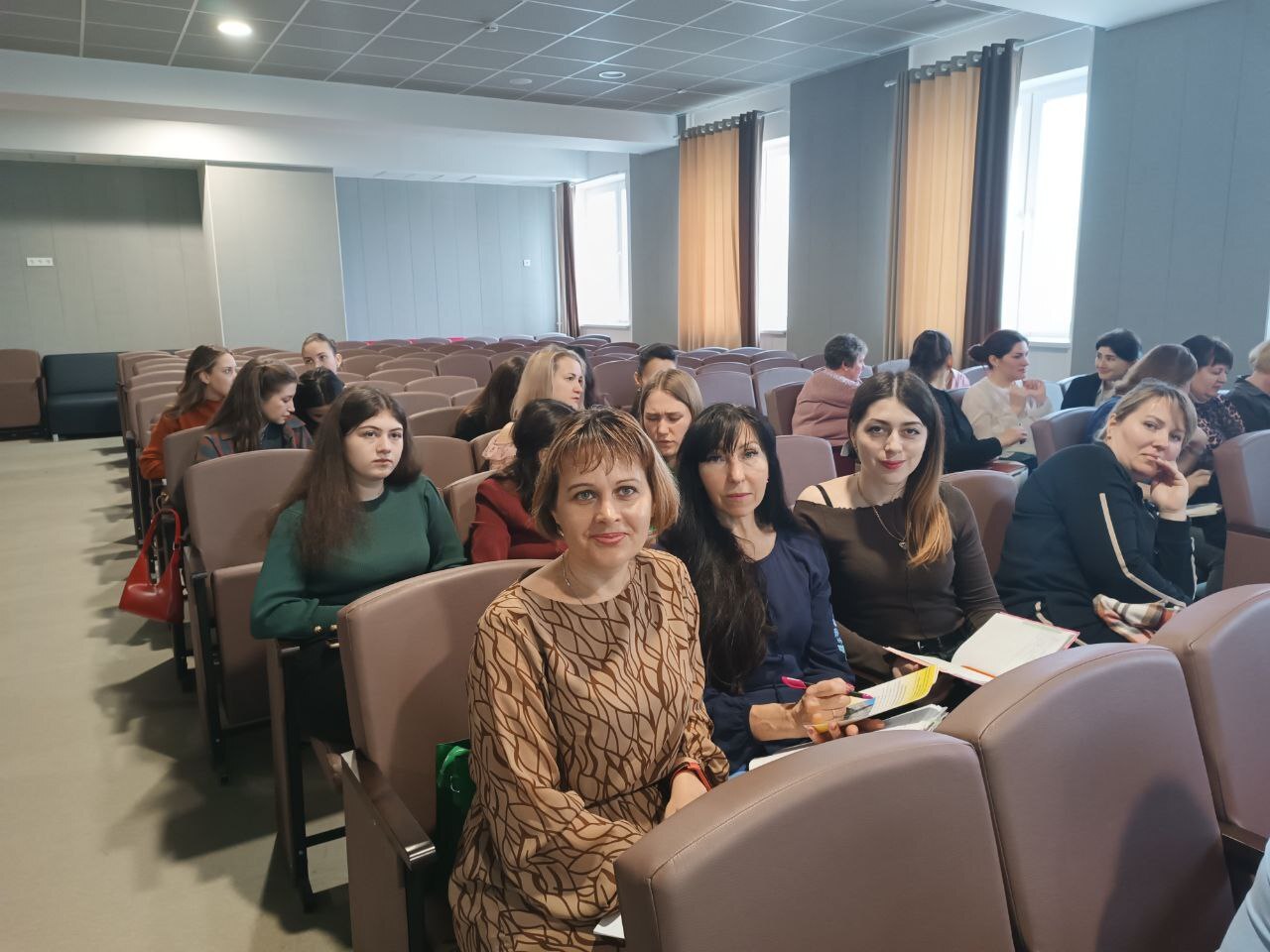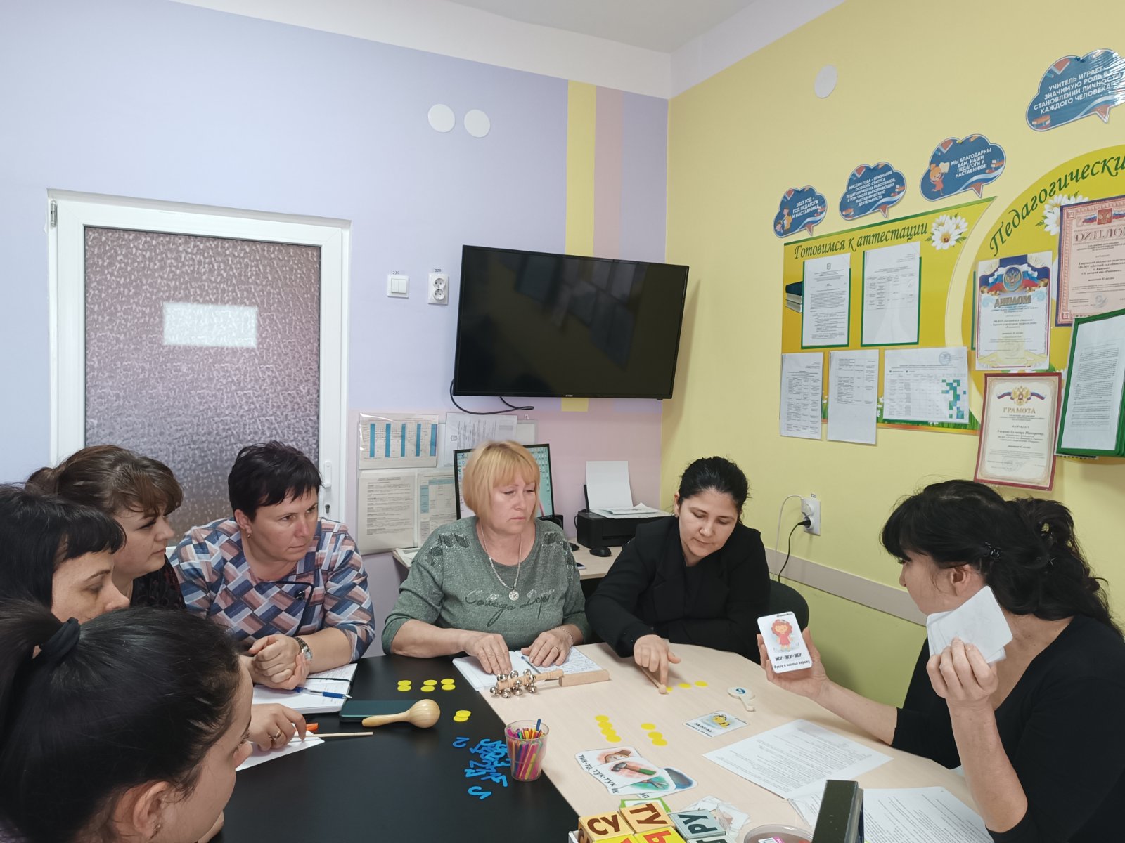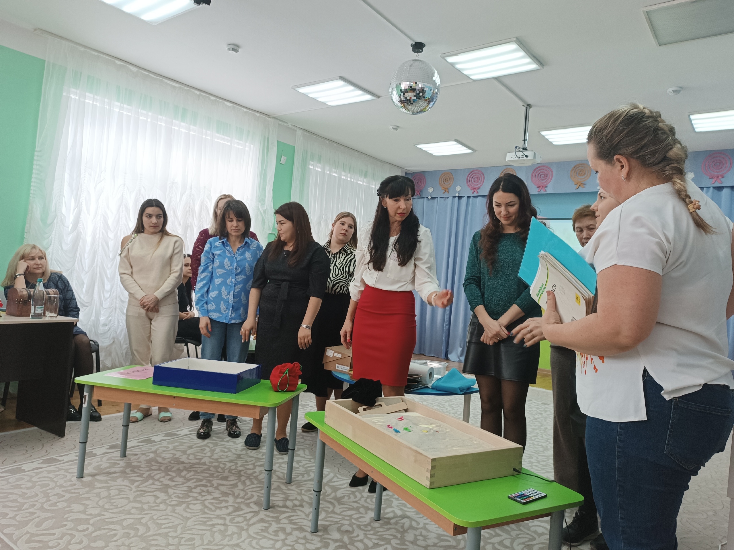 44 педагога из детских садов Симферопольского района приехали к нам поучится у наших педагогов и поделится своим опытом работы со старшими дошкольниками. Учитель-логопед Седик А.В. поделилась своим опытом работы по применению эффективных технологий: песочной терапии и акватерапии, в практику работы с детьми по обучению чтению и грамоте.