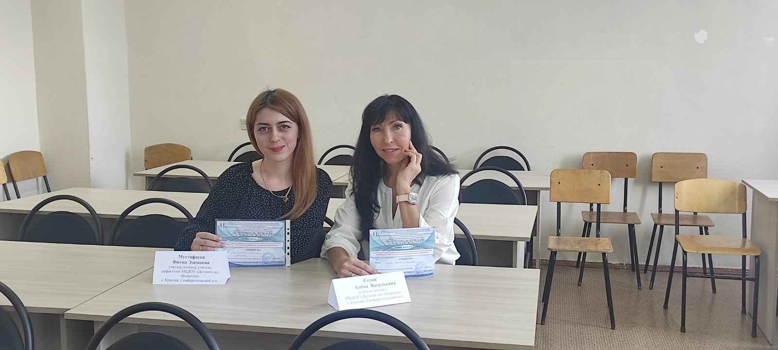 24.11.2023г. наши специалисты Мустафаева Ф.Э. -учитель -дефектолог и Седик А.В. - учитель-логопед приняли участие в работе регионального круглого стола «Актуальные вопросы коррекционной деятельности специалистов сопровождения обучающихся с ОВЗ в условиях специального и инклюзивного образования», который проходил в КИПУ г. Симферополь. Алёна Васильевна и Фатма Эдемовна делились опытом коррекционно-развивающей работы в условиях инклюзии с коллегами из всего Крыма.