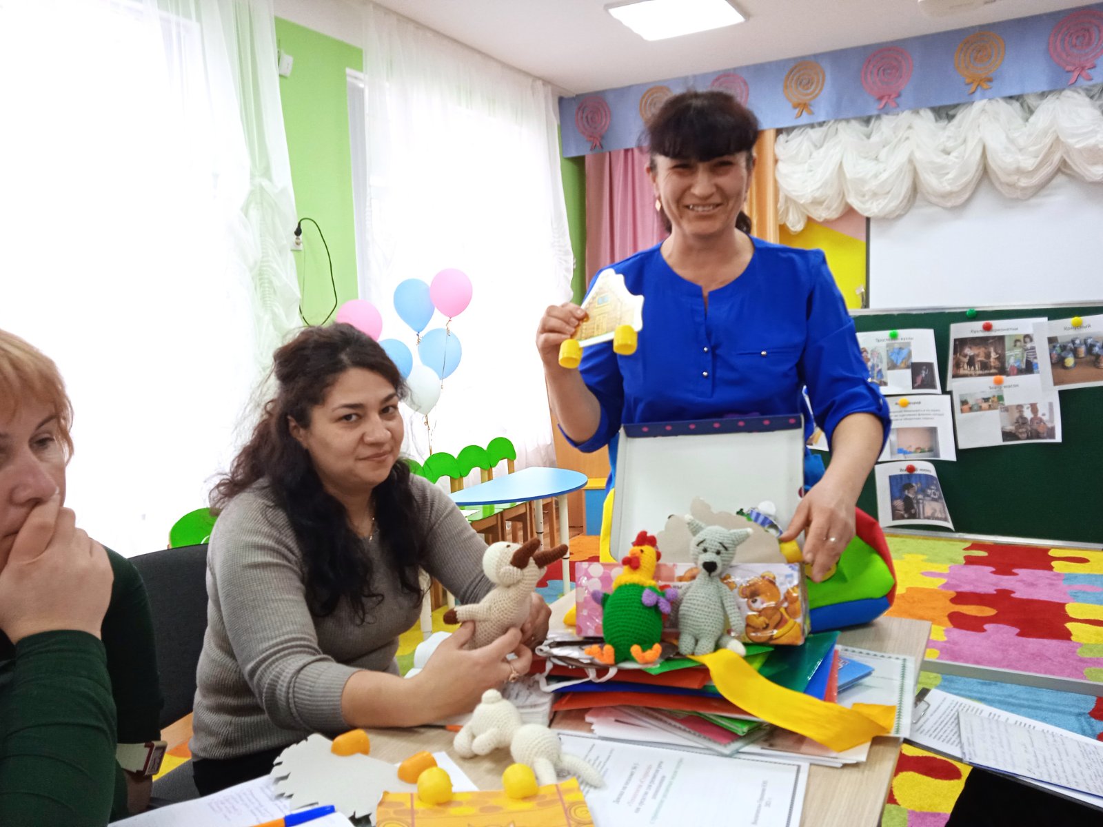 25.11.2021 по Плану РМО ШМВ Симферопольского района выступила с сообщением из опыта работы «Применение проектного метода «Storysack» в работе с детьми по развитию диалогической речи старших дошкольников»: