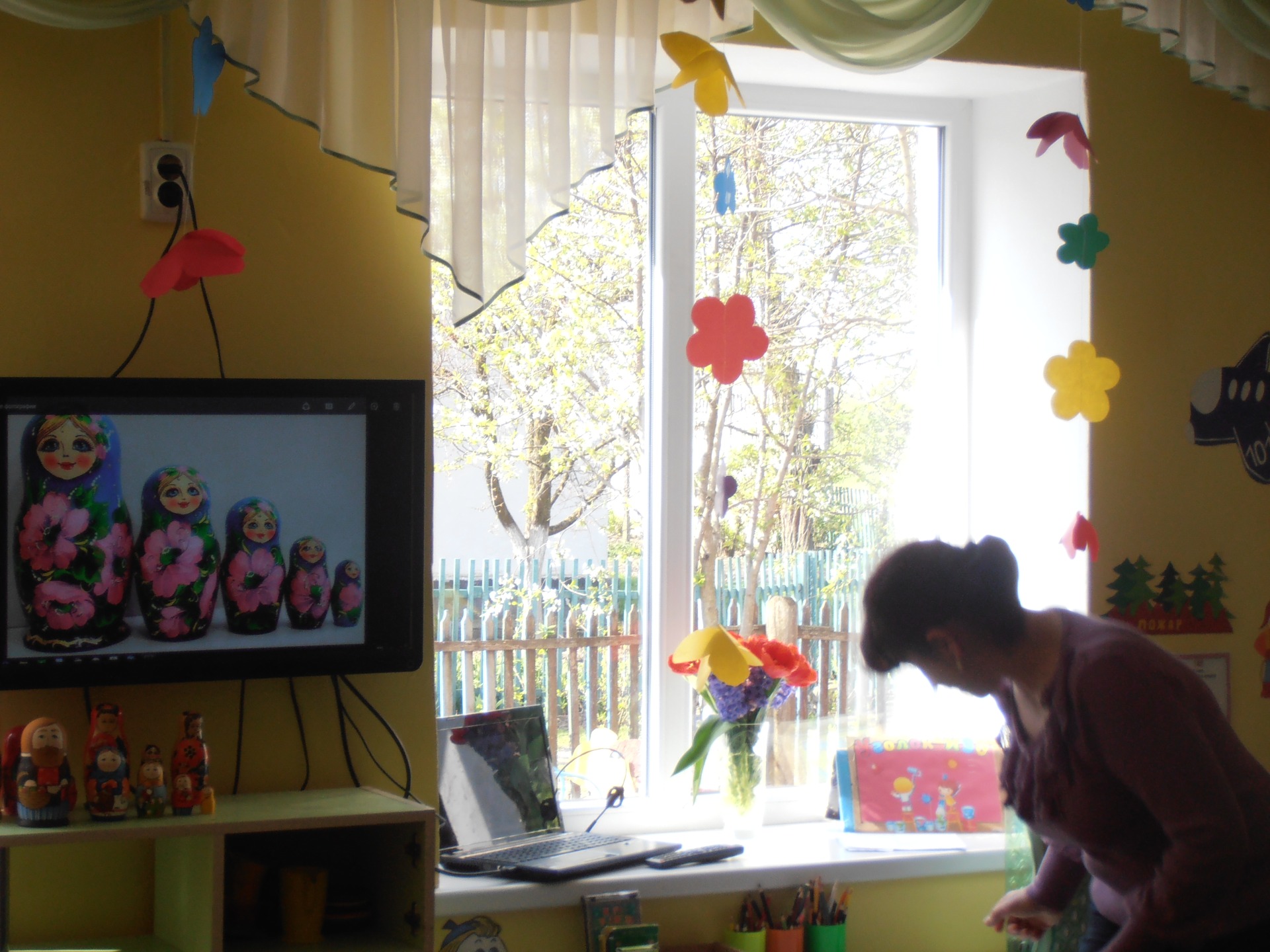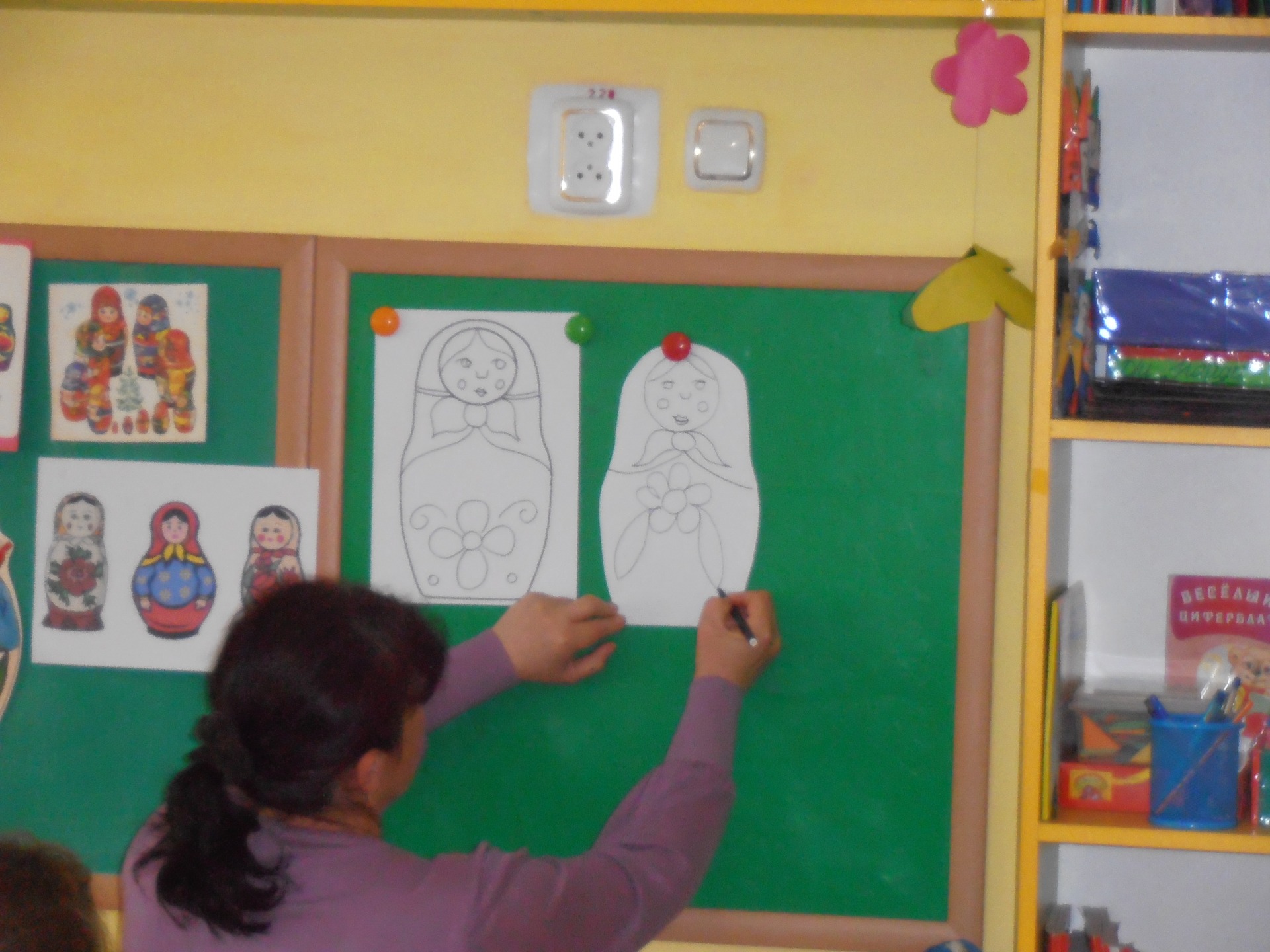 1. комплексное занятие "Русская матрешка", на котором дети старшей группы ознакомились с матрешкой как видом народной русской игрушки, историей ее создания, особенностями внешнего вида, с известными росписями, педагог проводила работу по формированию у детей умения рисовать матрешку с натуры используя элементы росписей.