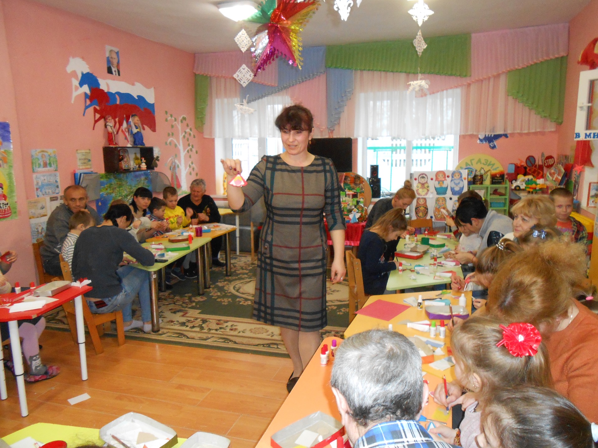 29 января 2019 года в старшей разновозрастной группе Наталья Юрьевна провела мастер-класс «Наша русская матрёшка». с родителями воспитанников. Родители вместе с детьми активно отвечали на вопросы, продемонстрировали свои знания о видах народного декоративно-прикладного искусства, а так же узнали некоторые факты о происхождении русской матрёшки. Затем в ходе практической части мастер-класса все с большим удовольствием изготовили куклу-оригами «Матрёшка».