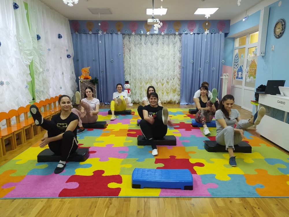 04.02.2022 Юлия Михайловна провела мастер-класс для педагогов «Сказочная аэробика с использованием степ – платформ»