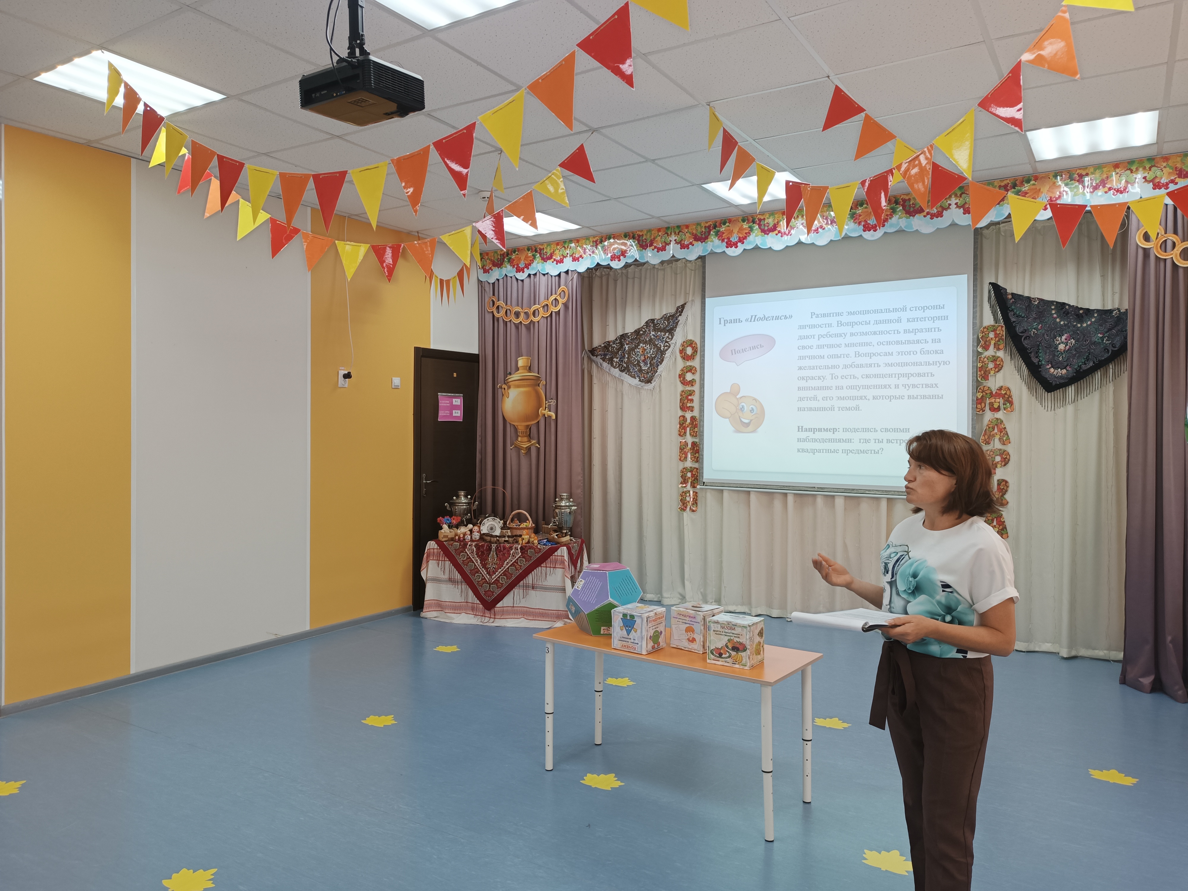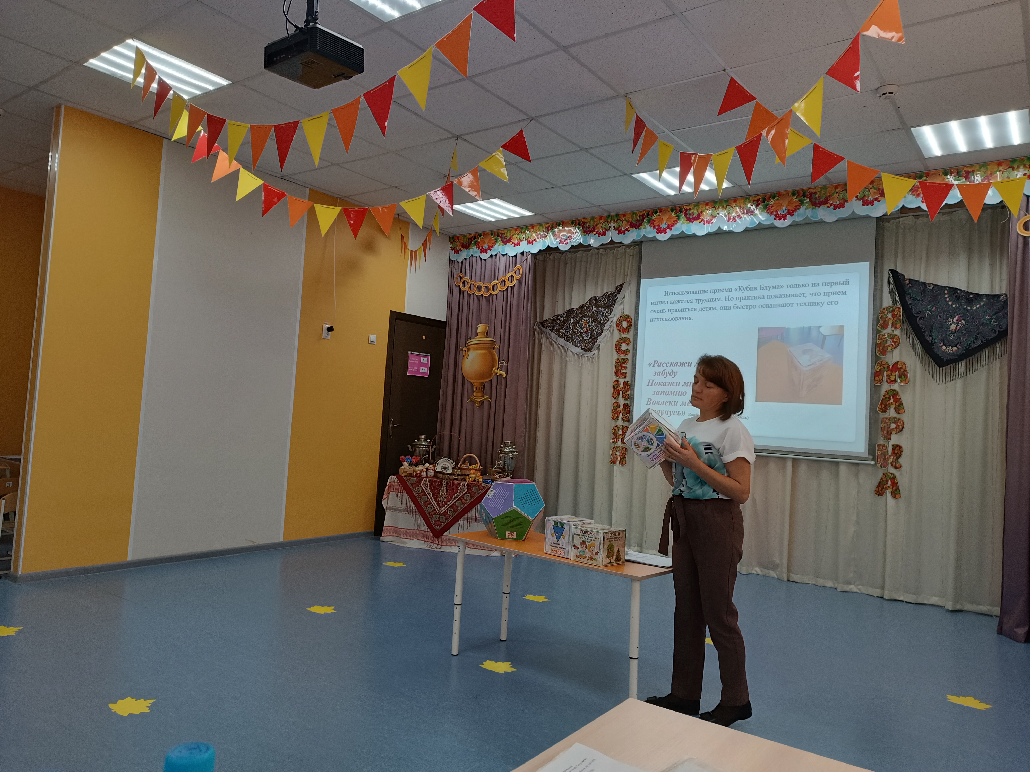 26.10.2023 г. в ходе проведения РМО ШМВ Симферопольского района Заскокина Ю.М. провела практикум из опыта работы: «Использование Кубика Блума» в решении задач математического развития дошкольников». Заскокина Ю.М. осветила вопрос об истории создания Кубиков Блума и спецификой применения данной технологии в математическом развитии дошкольников в разных возрастных группах. Юлия Михайловна обратила внимание молодых специалистов на то, что использование Кубиков Блума помогает реализовать принцип интеграции образовательных областей, в соответствии с ФГОС ДО и решить задачи по реализации требования ФОП ДО. В ходе практической деятельности молодые специалисты смогли детально ознакомиться с разработанными кубиками и поиграть с ним.