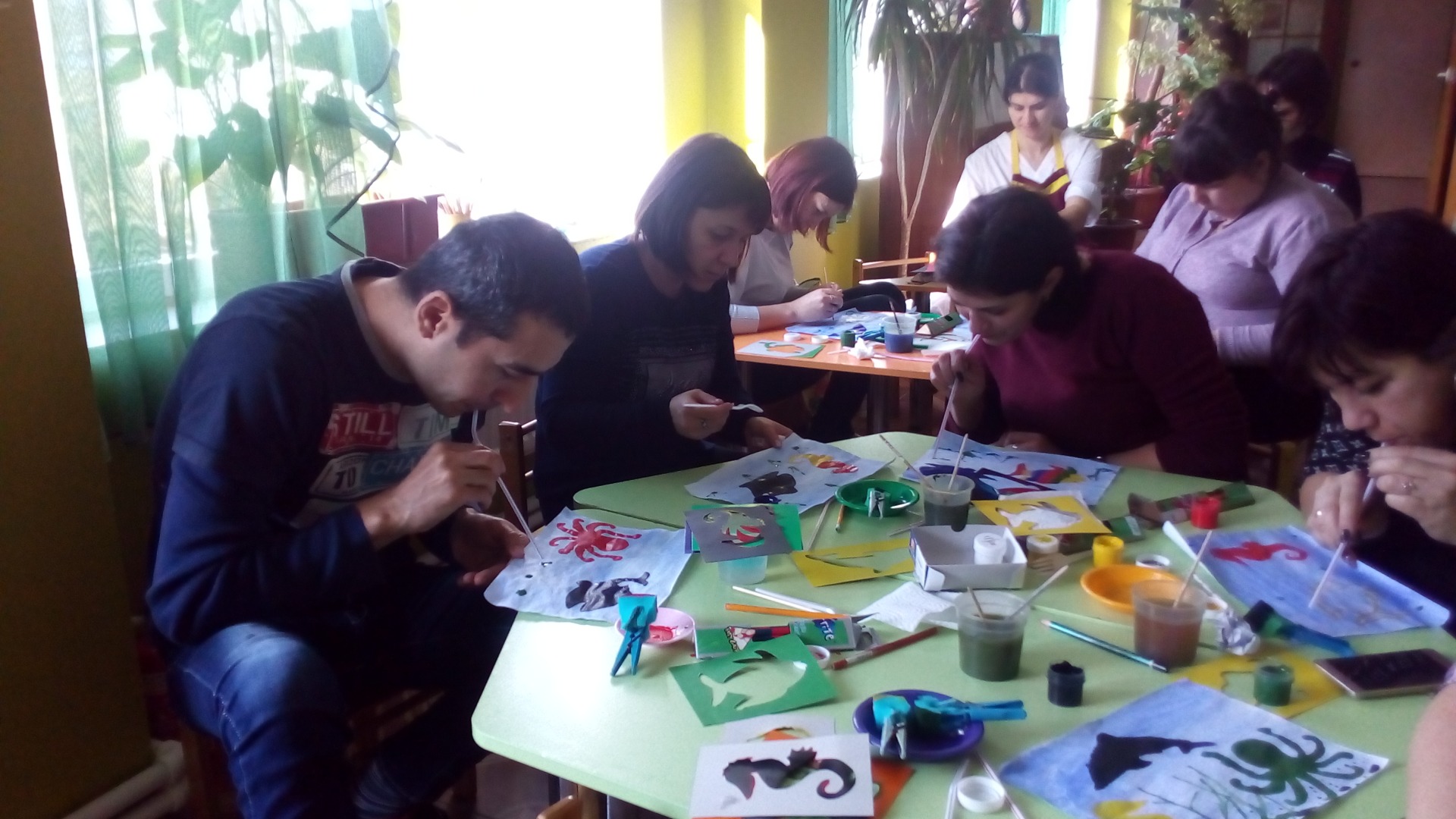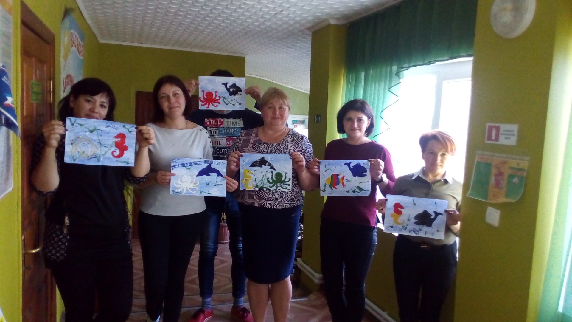 Проведение мастер-класса с педагогическим коллективом по нетрадиционному рисованию "Морское дно глубоко- до него добраться не легко"